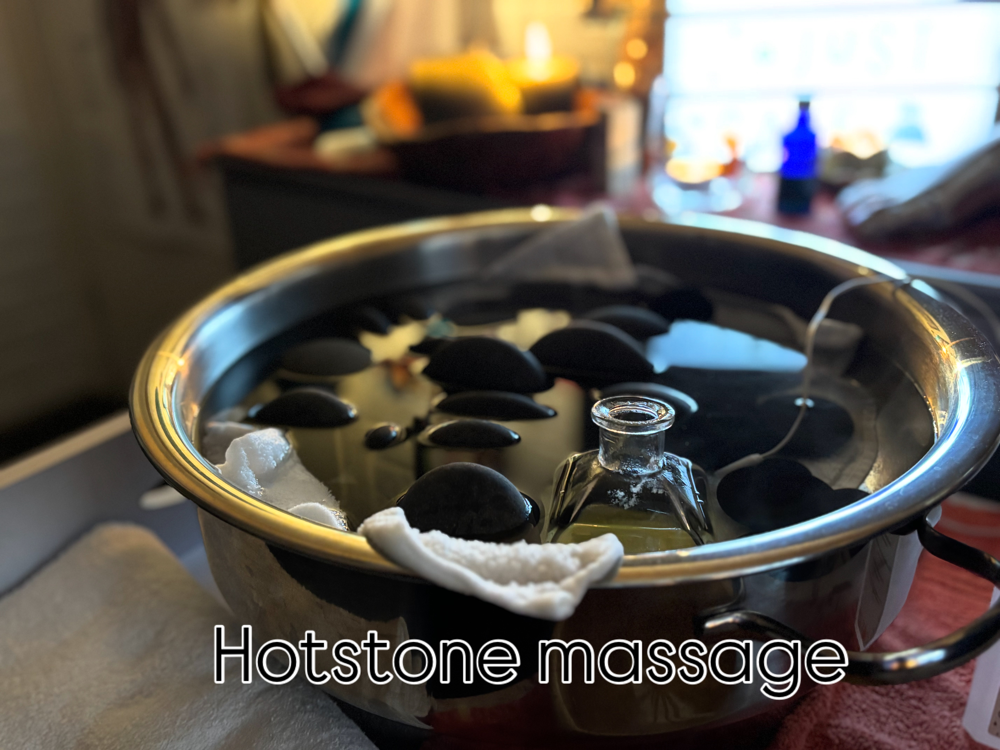 Bij een hotstone massage wordt er gemasseerd met opgewarmde lavastenen (basalt). De massage draagt bij tot het zelfherstel van het lichaam, stimuleert de organen en de bloedsomloop en draagt bij tot ontgifting en balans.